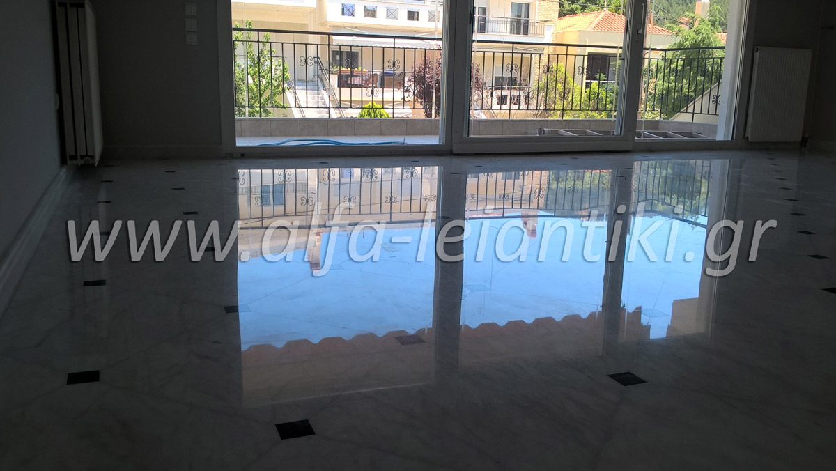 Ακολουθώντας νέες αποτελεσµατικές µεθόδους στη διαδικασία λείανσης µαρµάρου, µπορούµε να επαναφέρουµε το µάρµαρό σας στην αρχική του κατάσταση και να το γυαλίσουμε, αναδεικνύοντας µε αυτόν τον τρόπο το φυσικό του χρώµα, ενώ παράλληλα παρατείνουµε τη διάρκεια ζωής του.