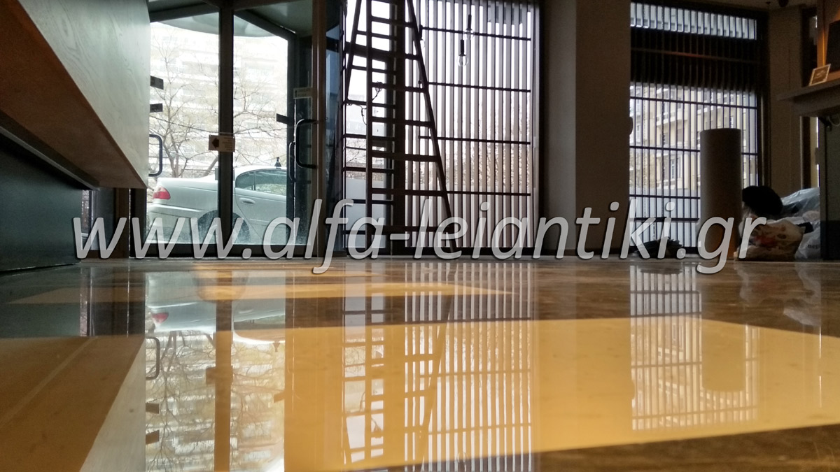 Νέα μέθοδο γυαλίσματος ΧΩΡΙΣ ΣΚΟΝΗ και ΧΩΡΙΣ ΤΗΝ ΧΡΗΣΗ ΧΗΜΙΚΩΝ με διαμαντομηχανές τελευταίας τεχνολογίας, με αποτέλεσμα το τέλειο γυάλισμα και την εξαιρετική εμφάνιση του χώρου σας
